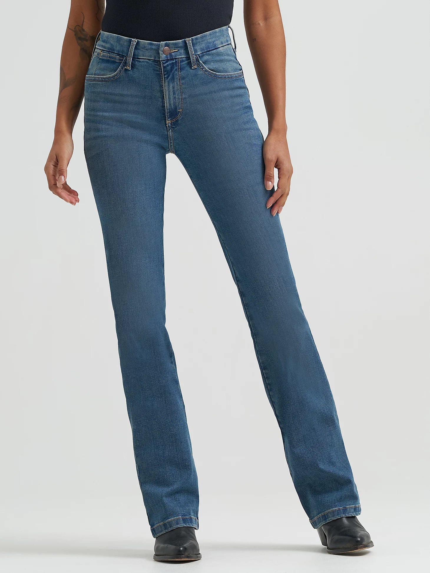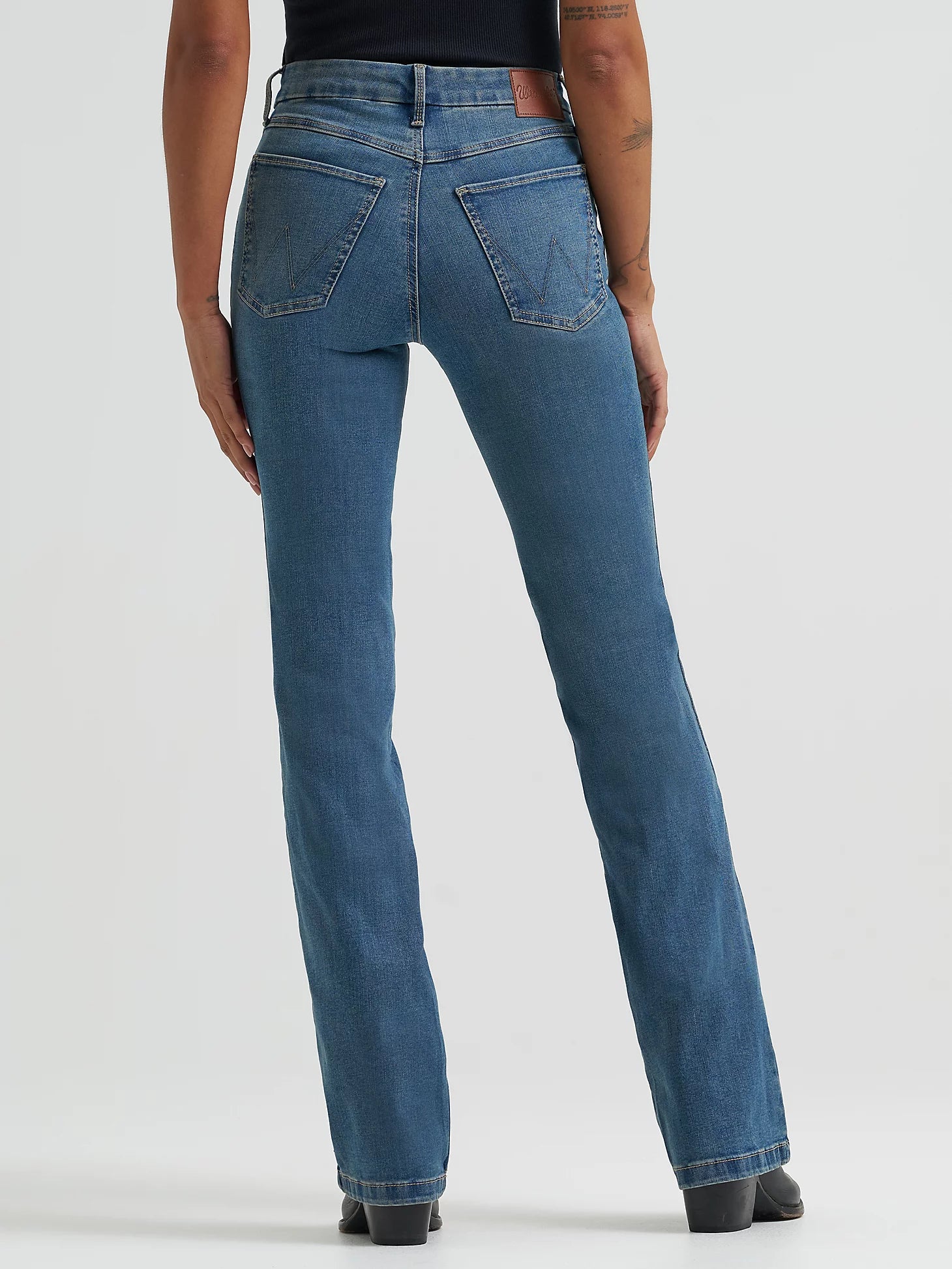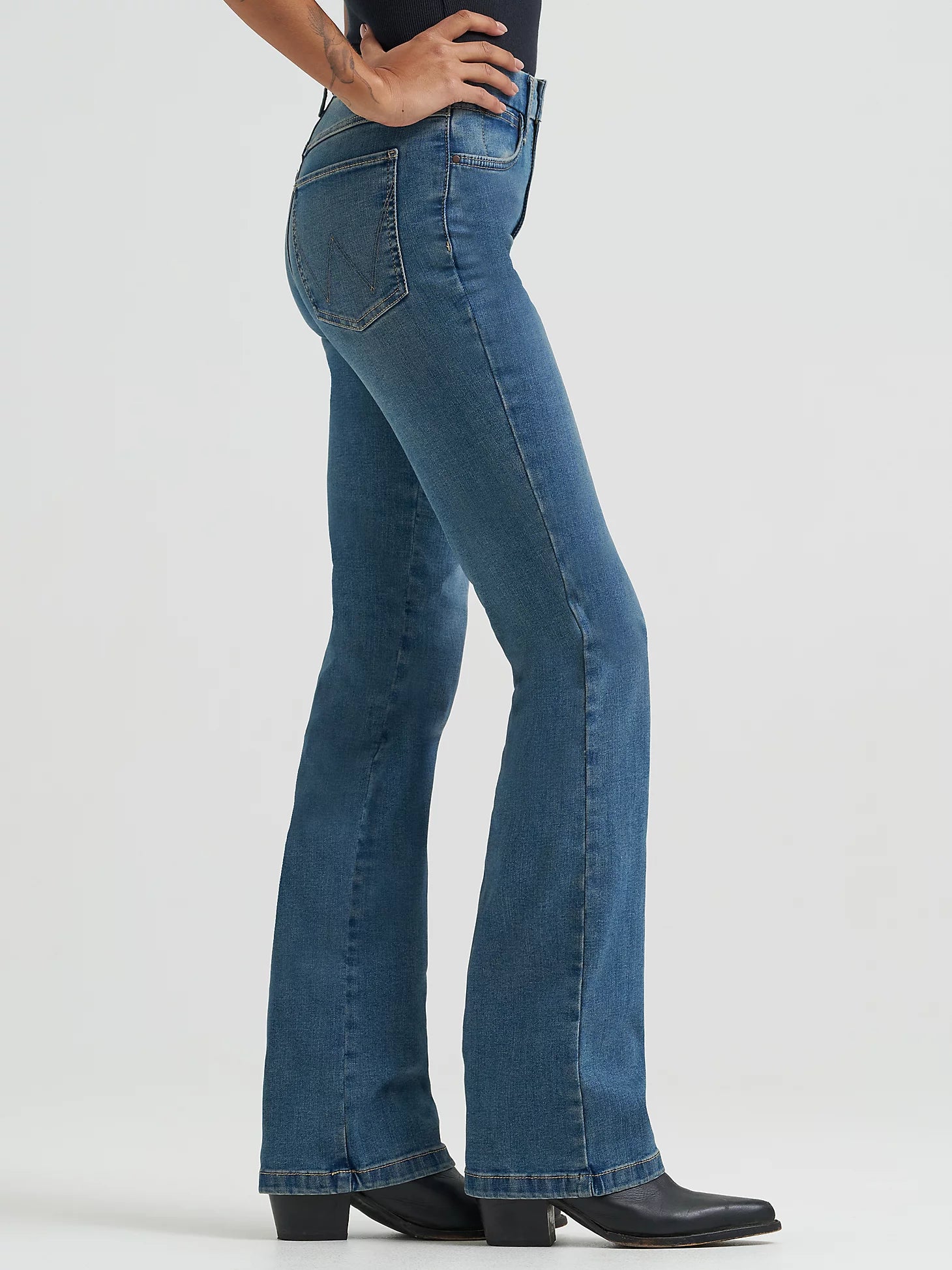 Welcome to a whole new frontier in fit. The Women’s Wrangler® Bespoke High-Rise Bootcut Jean gives your curves the spotlight they deserve. It comes with a contoured waistband that eliminates gapping and a silhouette that celebrates your shape from every angle. These bootcut jeans for women are crafted from a comfortable cotton blend with stretch for added flexibility and shape retention. They also feature all the iconic details: the five-pocket styling, the “W” embroidery, a logo patch, and authentic washes. The Wrangler Bespoke Collection features superior stretch and detailing, so finding the right fit is no longer a wild rodeo.