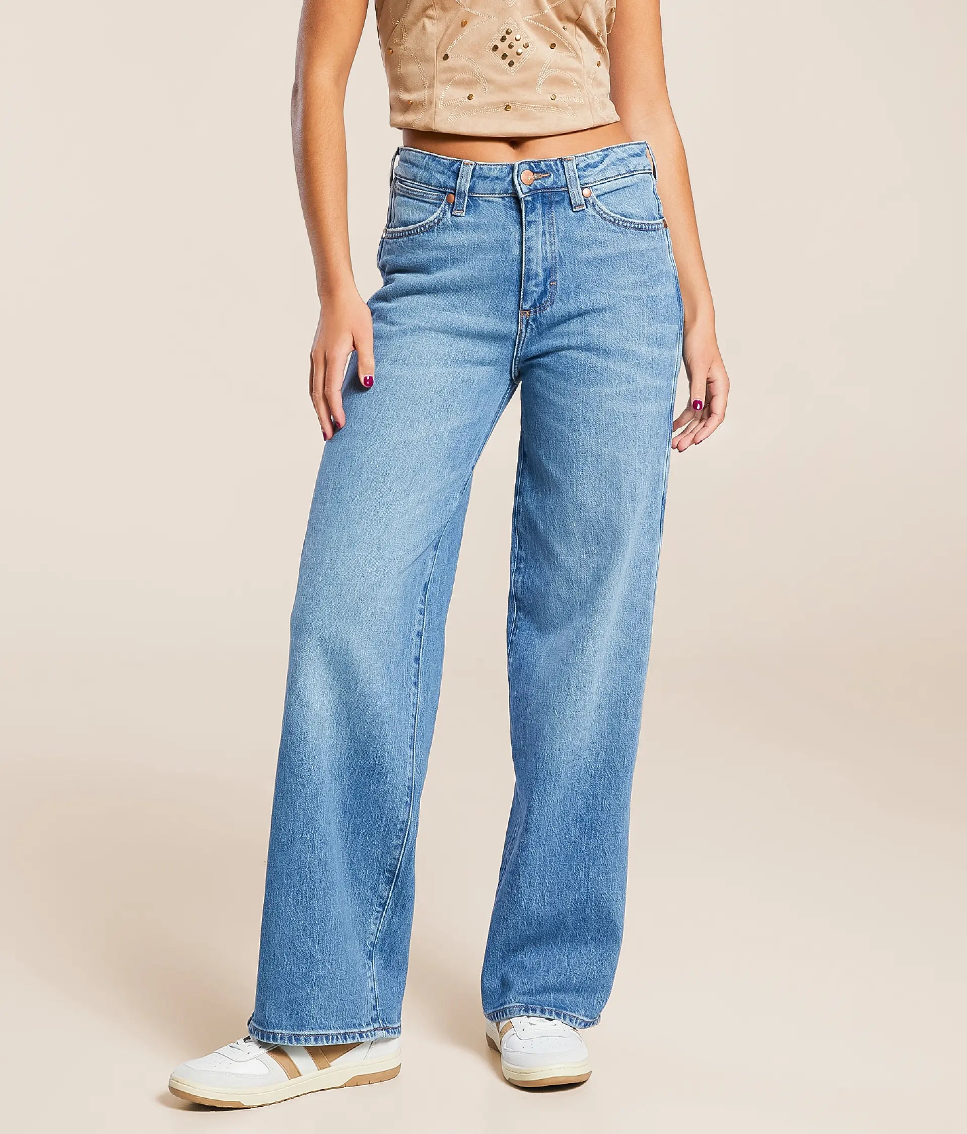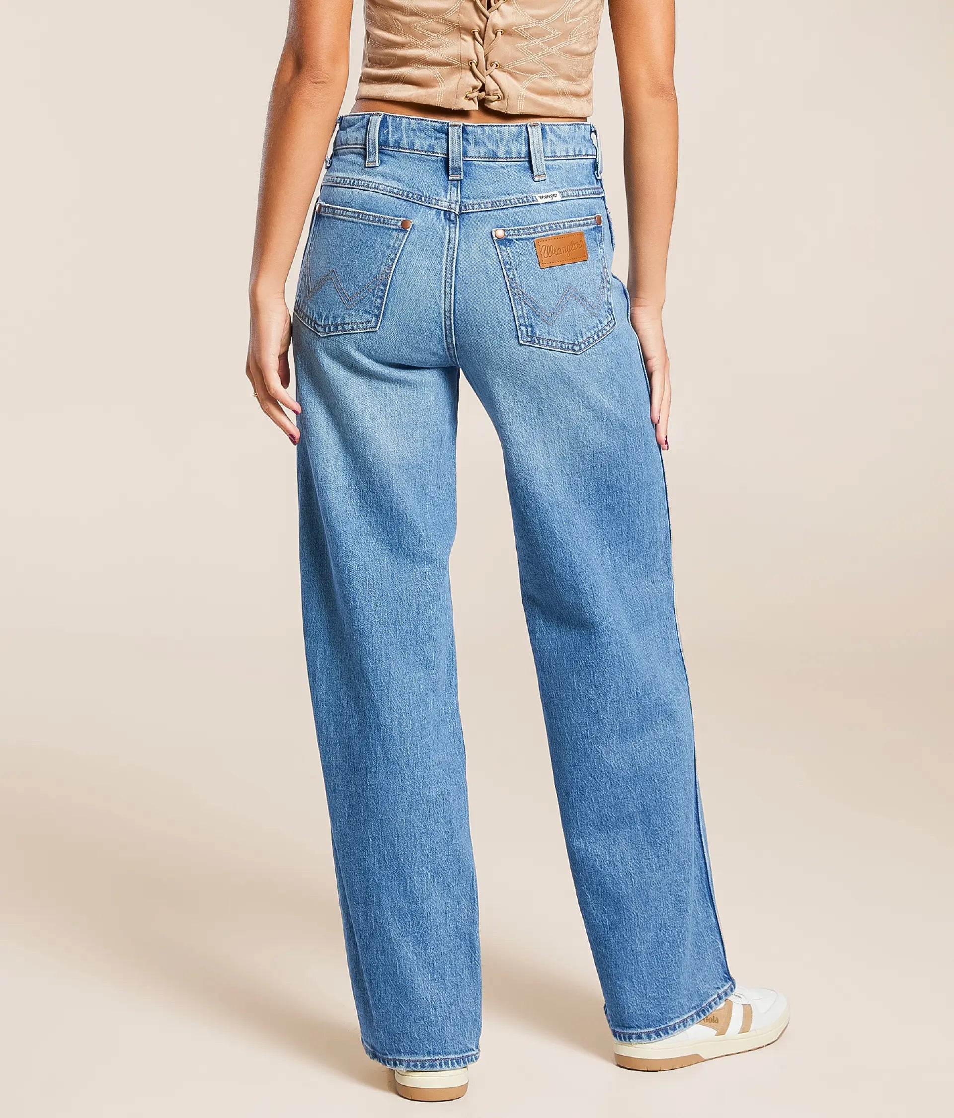 Want that effortlessly cool, Y2K vibe? These Wrangler® jeans deliver! A high rise, loose fit with just the right amount of stretch and a straight leg—perfect for a comfy, on-trend look. Get ready to rock the throwback style!