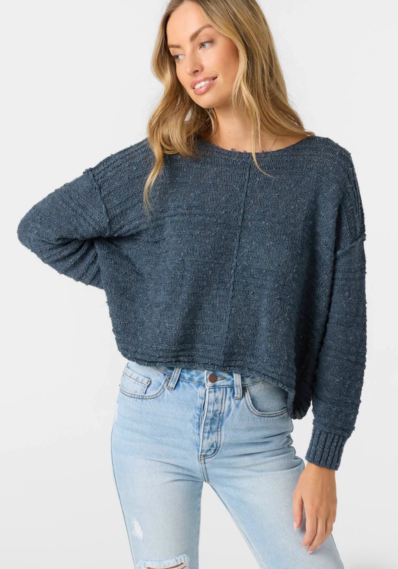 Ease into colder days with this light and comfy pullover sweater. It features a skimmer length fit, seam details and solid color wash.