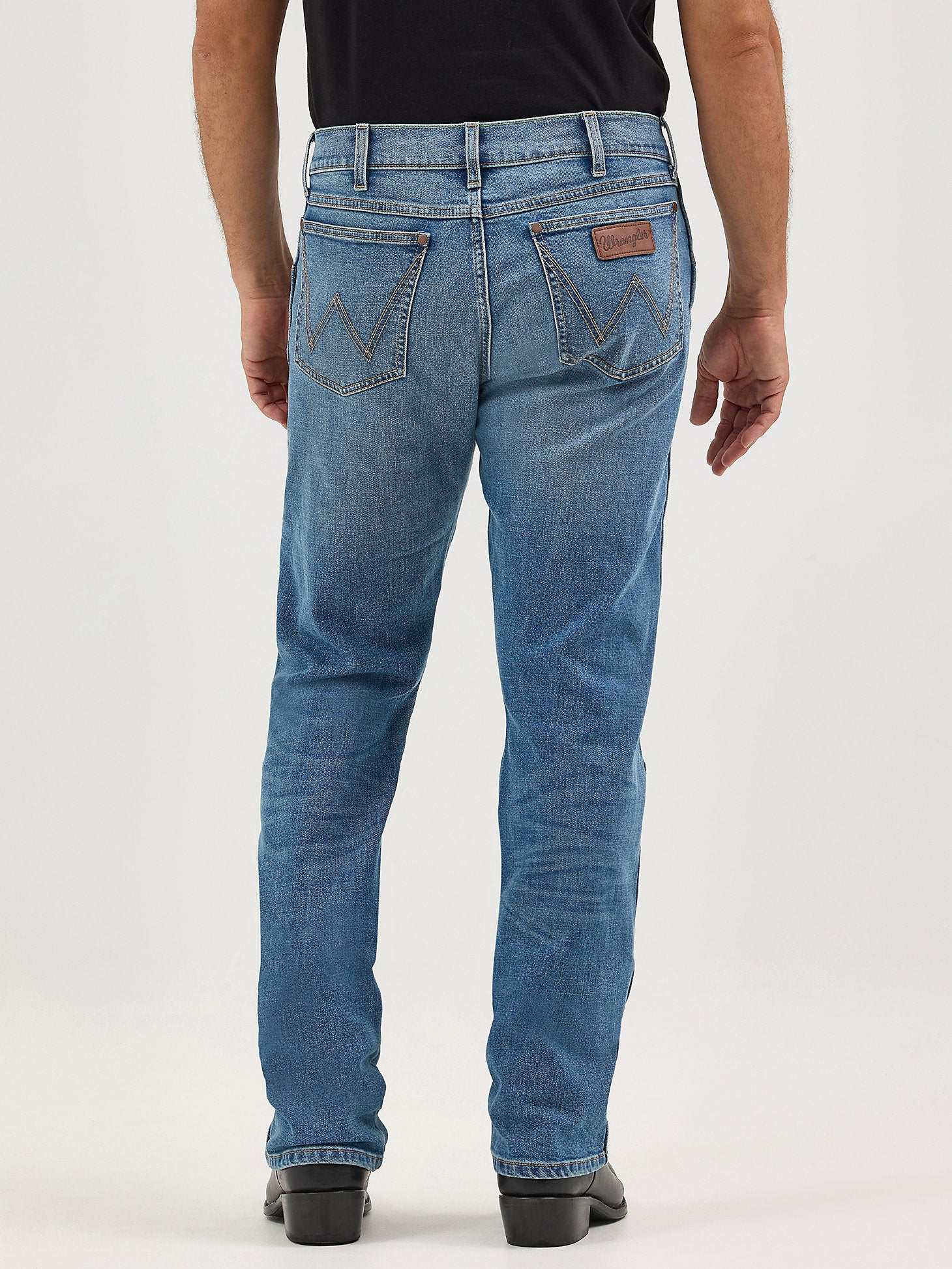 Wrangler® Retro® slim fit jeans nod to our history while introducing fits and washes suited for the modern cowboy. Designed with a closer fit and leg opening that still falls comfortably over boots, our men's Wrangler® straight leg slim fit jeans add extra style to the classic look you love. These jeans sit low on the waist and make it easy to show off your favorite belt buckle. That design detail is our Western heritage showing through, something that happens often with the Wrangler® Retro® collection.