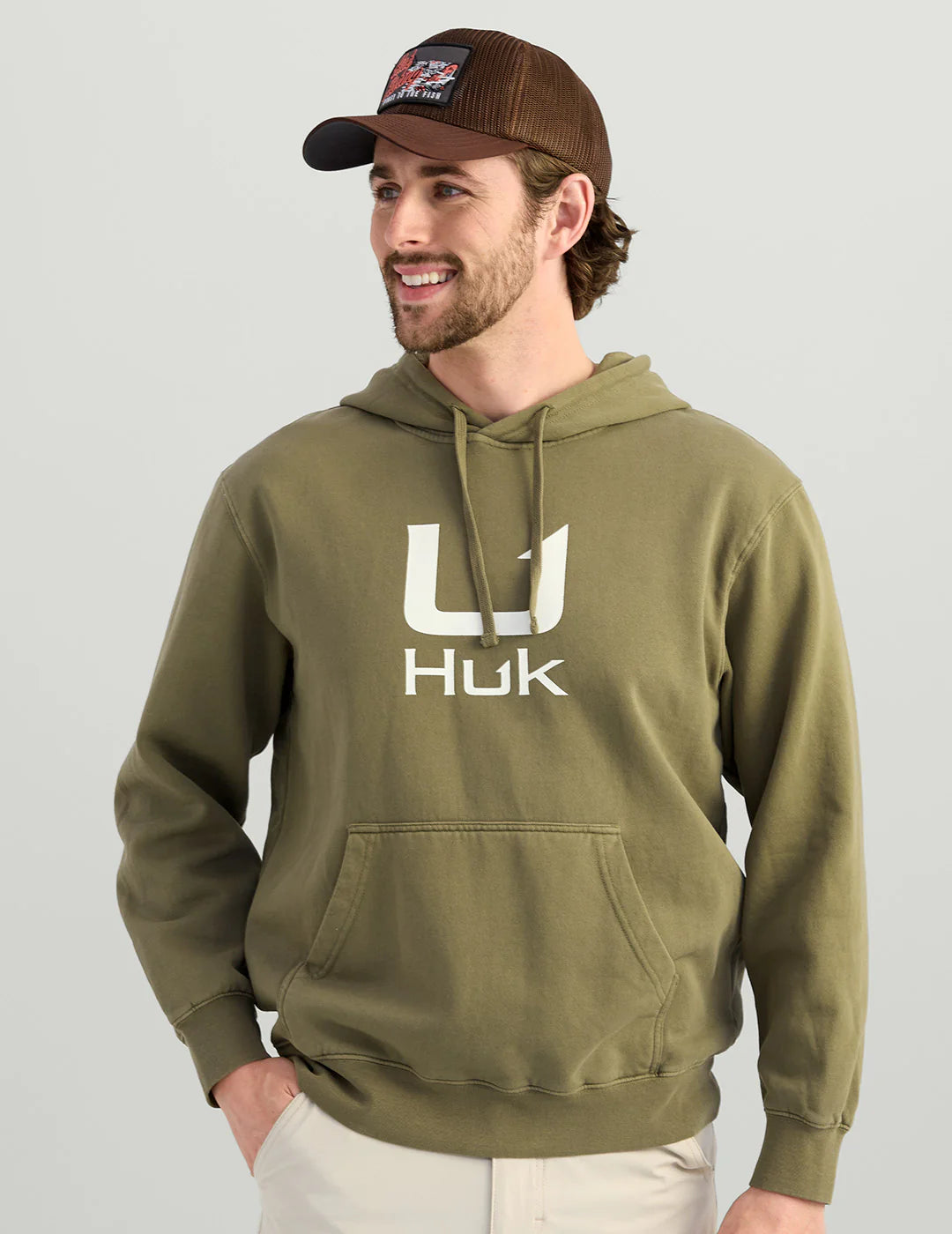 Our Huk Barb U Cotton Fleece Hoodie is crafted with a soft cotton blend that will keep you cozy all season long. It has a hood and a kangaroo pocket for extra warmth.