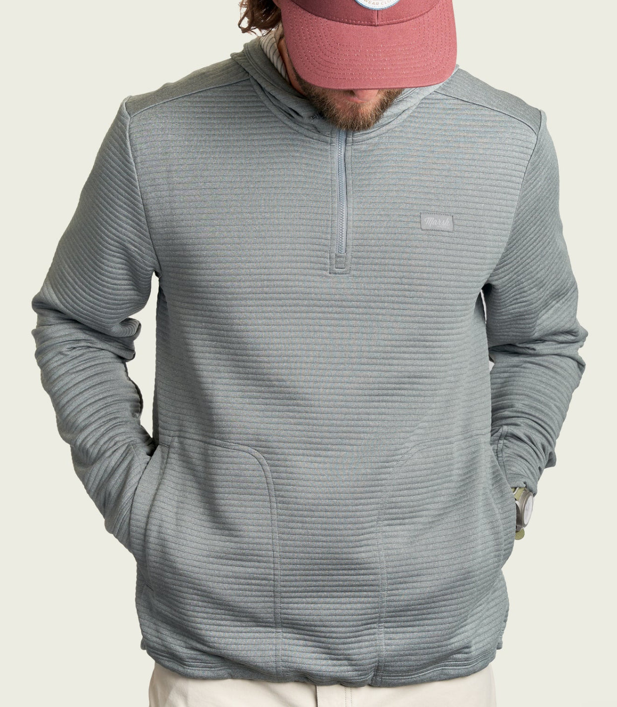 Borrowing technology from the sleeping bag world, this baffle fabric construction keeps you warm when the temps drop but cool and dry when things start to heat up! From early morning boat runs to fireside hangouts this hoodie will become a go-to piece.