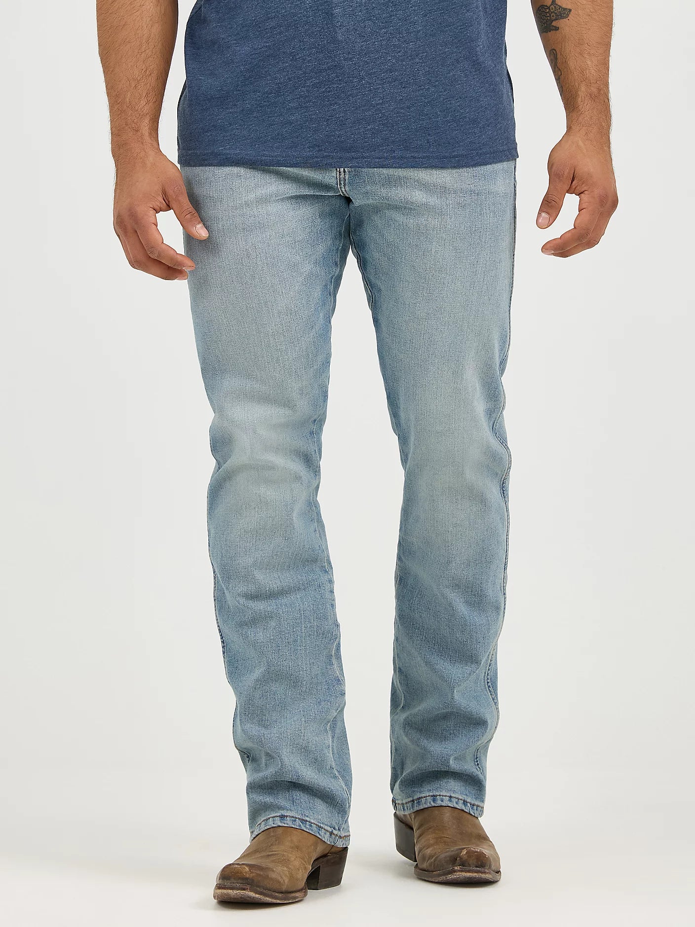 Since 1947, Wrangler® jeans have been a cowboy-approved wardrobe staple. Inspired by our Western heritage, these Wrangler® Retro® jeans combine our most iconic features with contemporary fits and washes. This updated classic features the same worn leather patch with our rope logo, 'W' stitching on the back pockets, and five-pocket styling. These men's slim bootcut jeans feature a streamlined silhouette through the seat, thigh, and knee, but the leg widens from the knee downward, which is good news for boots. When it comes to finding the best bootcut jeans for men, your search ends here.